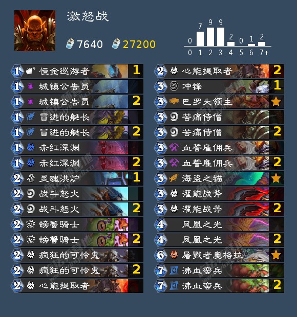 新版本给战士补强了一系列火焰套装,但经过实战筛选,能达到狂野激怒战强度要求的真的只剩下了凤凰之光这张奥术聪明。阳炎冶煅是很好的buff节奏牌,然而他是一张类武器的牌,本来这就让本来已经有三把刀的激怒战难以再考虑携带。日怒勇士则由于火焰法术的稀缺表现远不如冒进的艇长。