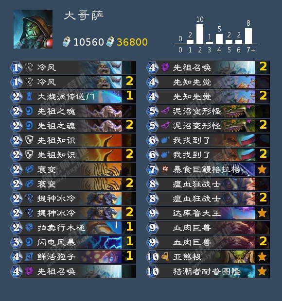 版本给萨满第二套体系的补强是大哥体系,萨满祭司在版本补强了瘟血狂战士,血肉巨兽这样便于套娃的牌之后有了更好的理由带上先祖之魂和鲜活孢子了。并且再有了先知先觉的补充后,无论是在启动前的场面补充还是防止先祖召唤以及我找到了拉空气上都有了明显地提升(随从数量增加导致抽不到泥沼变形怪确实是个硬伤,但在雷霆绽放挨刀了以后,泥沼变形怪的优先级真的掉的厉害。)