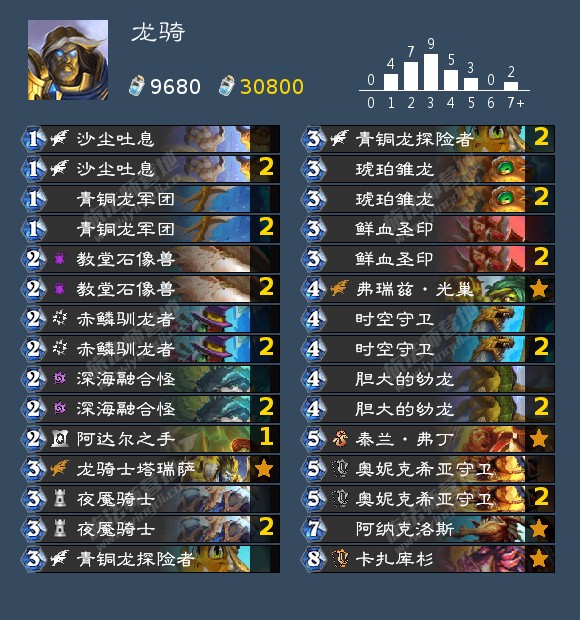 一年又一年,设计师还没有忘掉龙骑。这个版本给骑士的龙体系的加强还挺令人心动的,关键卡就是阿纳克洛斯能够无条件的强行返场。如果你自信地认为弗瑞兹·光巢能够稳定的在4费回合打出,那么龙骑一定是不错的选择。或许再有一个像巨龙降临那样的版本,龙骑终有一天能够成为主流狂野卡组在环境中出现。