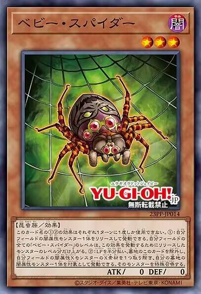 ②:将这张卡解放才能发动。从手牌·卡组将最多3只「小蜘蛛」特殊召唤。这个效果特殊召唤的怪兽等级变为5,作为超量召唤的素材的场合,不是暗属性怪兽的超量召唤不能使用。这个效果的发动后,直到回合结束时自己不是超量怪兽不能从额外卡组特殊召唤。