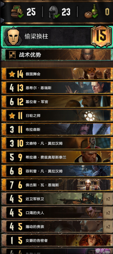 操作注意事项:先下望族再开日轮之师,不管是看到流血还是潜伏都能给引擎涨点,夫人跟近卫军越早下越好。本质上是引擎卡组,需要一些对局熟练度。