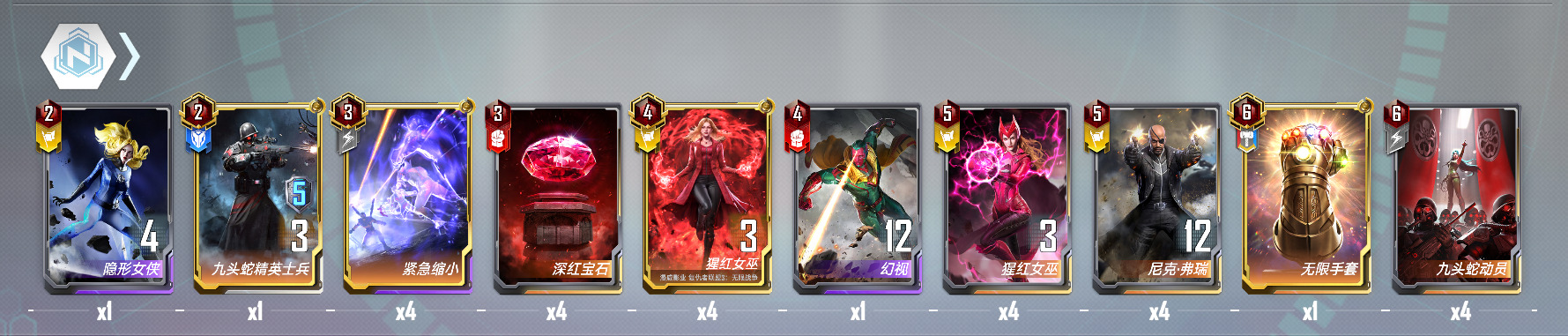 ③本卡组需要留存在场上的只有【铁拳】【幻视】【猩红女巫(MCU)】,其他的都可以走,不要贪,该换就换。