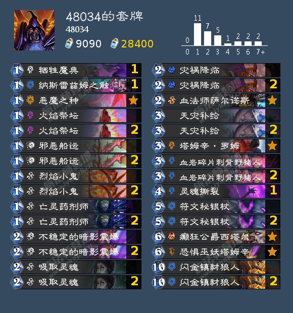 笔者地精大战侏儒版本入坑,从小学毕业打炉石到如今大学即将毕业,术士职业爱好者,一直想能构筑出一套创新卡组来营地发攻略,奈何构筑能力过于高超,经常一张不改直接copy,故多年以来一直没能发攻略。正在大家苦苦等待古夫大帝离开标准之时,术士也有两张卡牌将会彻底留在收藏之中,恶魔之种和灵魂窃贼退环境之后,就没有模式再能使用这两张卡牌(如果后面解禁,就算我云了**哈)作为防术爱好者,我尝试构筑了一套当前环境下的任务术卡组。我在钻石~传说分段胜率超过55,对德鲁伊也算是小优,希望和各位术士玩家一起探讨,顺便分享一下我的对局思路。