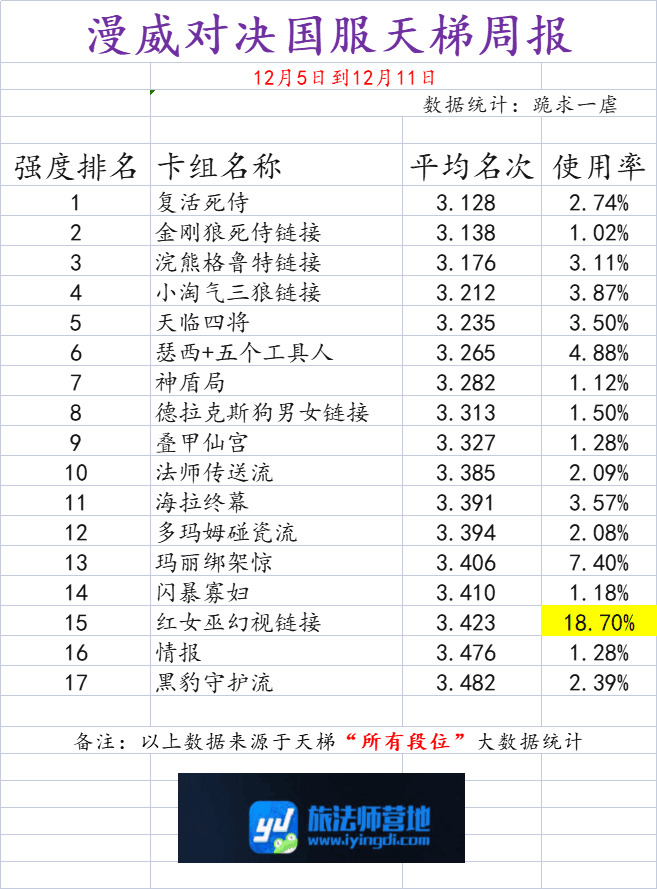 以下数据为天梯“所有段位“大数据统计: