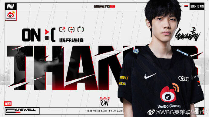 感谢ON选手对WBG英雄联盟分部的付出与陪伴,也感谢粉丝们的关心与支持。