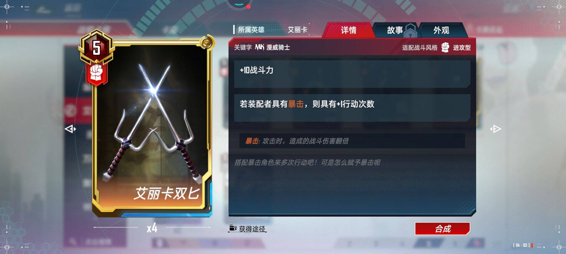 技能部分 前面说了 我是季票党,不是氪金大佬,所以有些技能是没有的, 有啥带啥,就不多说了,主要技能 ; 集结神兵,这套卡组的最强技能,前期四败的话,豹子,辣椒,夫人,经济好,血量高,甚至有两个四星夫人,可以直接拉6本去开彩虹 ,后期四败的话,更强,主力基本一波全四星,按照目前环境,概率不大,一座总有火箭熊跟银武赛马,另一个四败技能;神王之怒, 5到6回合可以锁血,后面就卖了,没位置给他,还有那个四败盾带不带都行,用处不大,最主要没位置,新索尔带斧子也不需要,阵容里有,刀锋,夜魔侠 万能,究极钢铁侠,,新索,安吉拉,有需要还得给幻世腾位置,后面连四星金钱豹都得走人。 艾丽卡部分