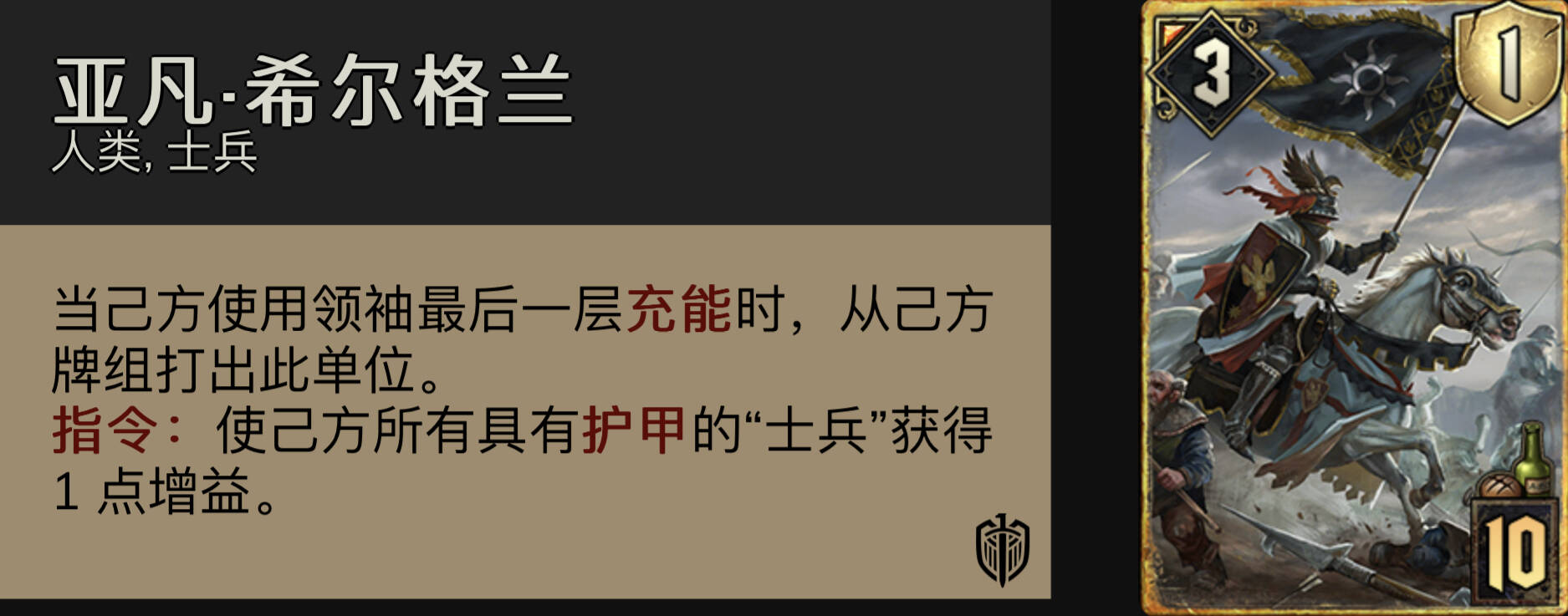 1、费恩·瓦·盖内尔(卫士):R1用来保护助祭或者R3保护其他引擎,对付去除较多阵营有很好的效果,本身亏身材。