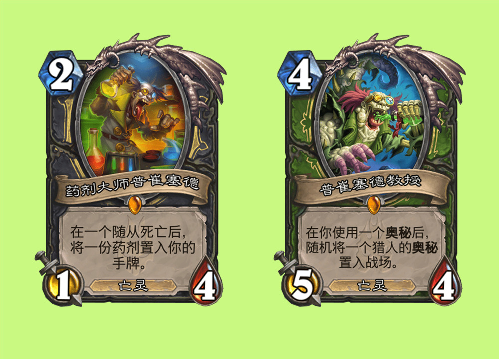 众所周知,普崔塞德这个角色不是第一次加入炉石传说了,他上一次出场的时候,是在冰封王座版本作为猎人的橙卡“普崔塞德教授”登场的,而那张橙卡打出时的台词会说:“好消息!各位!我完善了**!”,这个卡牌趣文很明显就是用了这句台词,并且调侃普崔塞德从猎人橙卡变成盗贼的牌了。