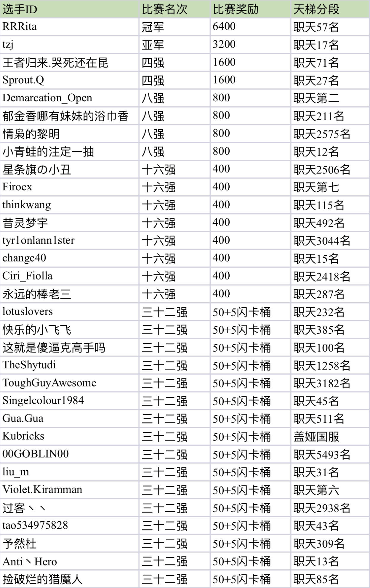 豪强云集,众神回归!本年度最具含金量的社区资格赛,最终以 RRRita夺冠落幕,他也成为本系列赛事最多奖金的获得者——8050元。