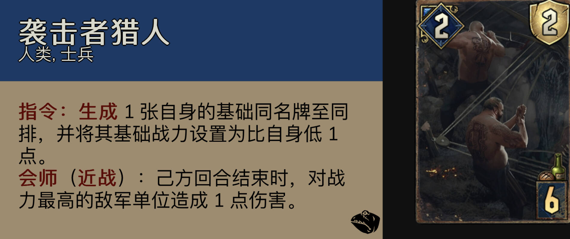 而且一般来说r1能出三张高地就已经足够了,剩下的狂野搭档我会用来补充点数。在能出的战士牌里,除了高地领主和布洛克瓦尔家族战士,以下几位哥有时有很强的作用。