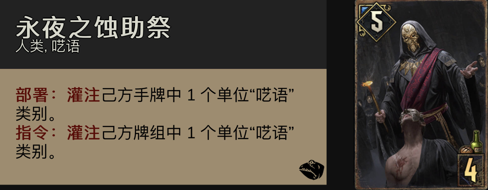 最关键的就是留巨斧挥击,留巨斧挥击!开局解助祭特别关键。巨斧挥击解,血鹰拉布洛克瓦尔家族战士再解,只要解个三四次,呓语就崩了,但如果手牌不好没有这么多解,那么群岛还是很容易输掉的= =