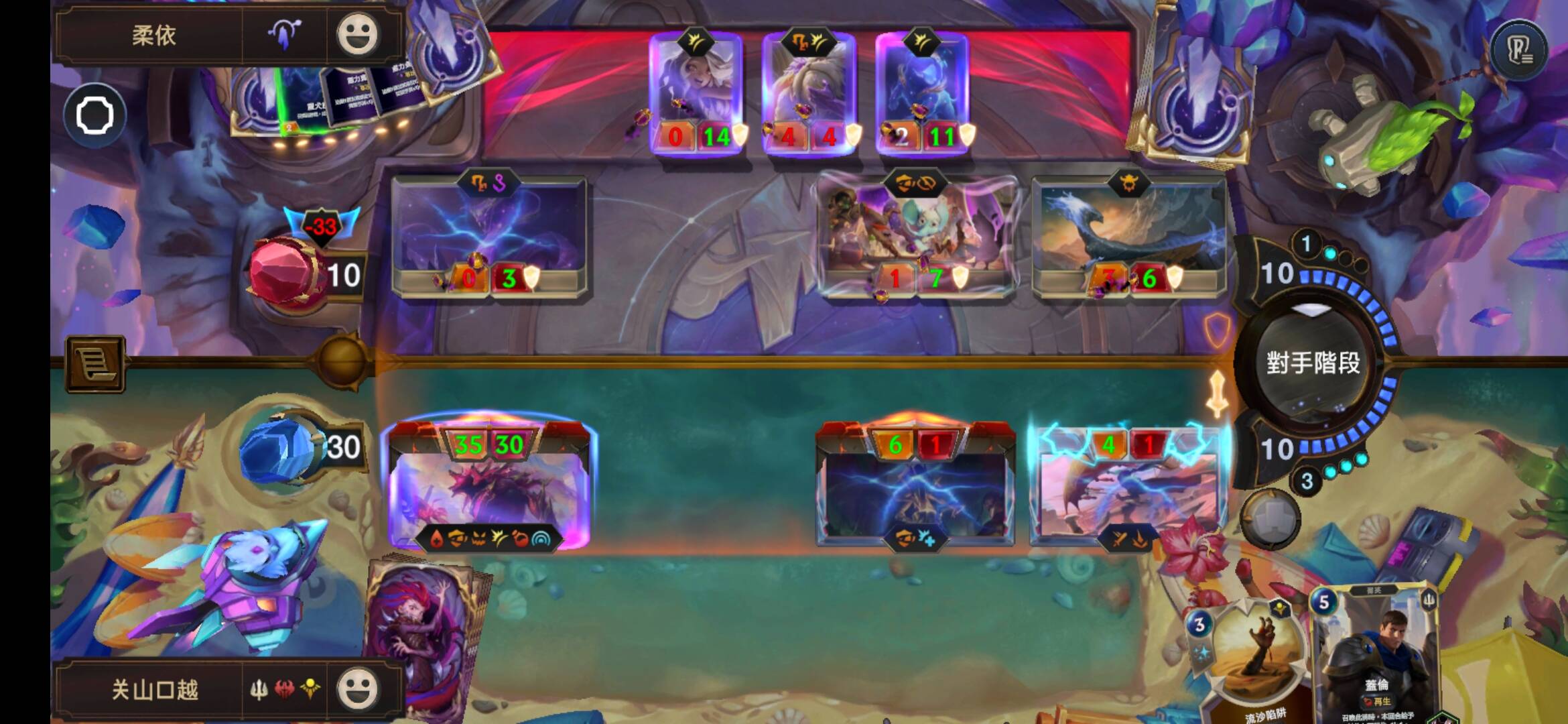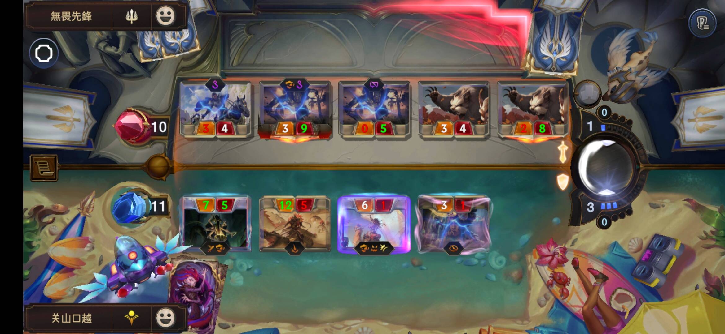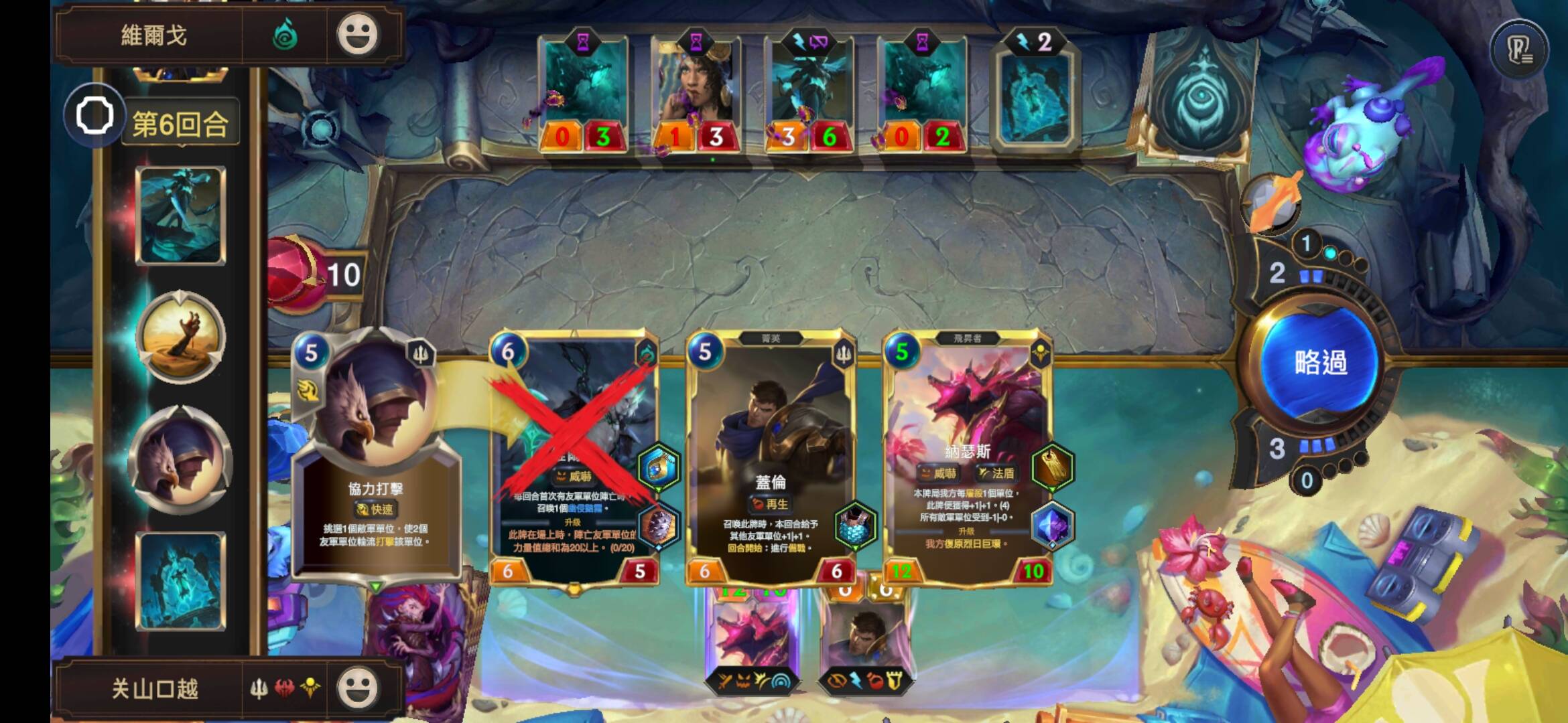佛爷关运气直接用频率抢血,1费易损+协力打击解掉第一个佛爷,同时盖伦升级。