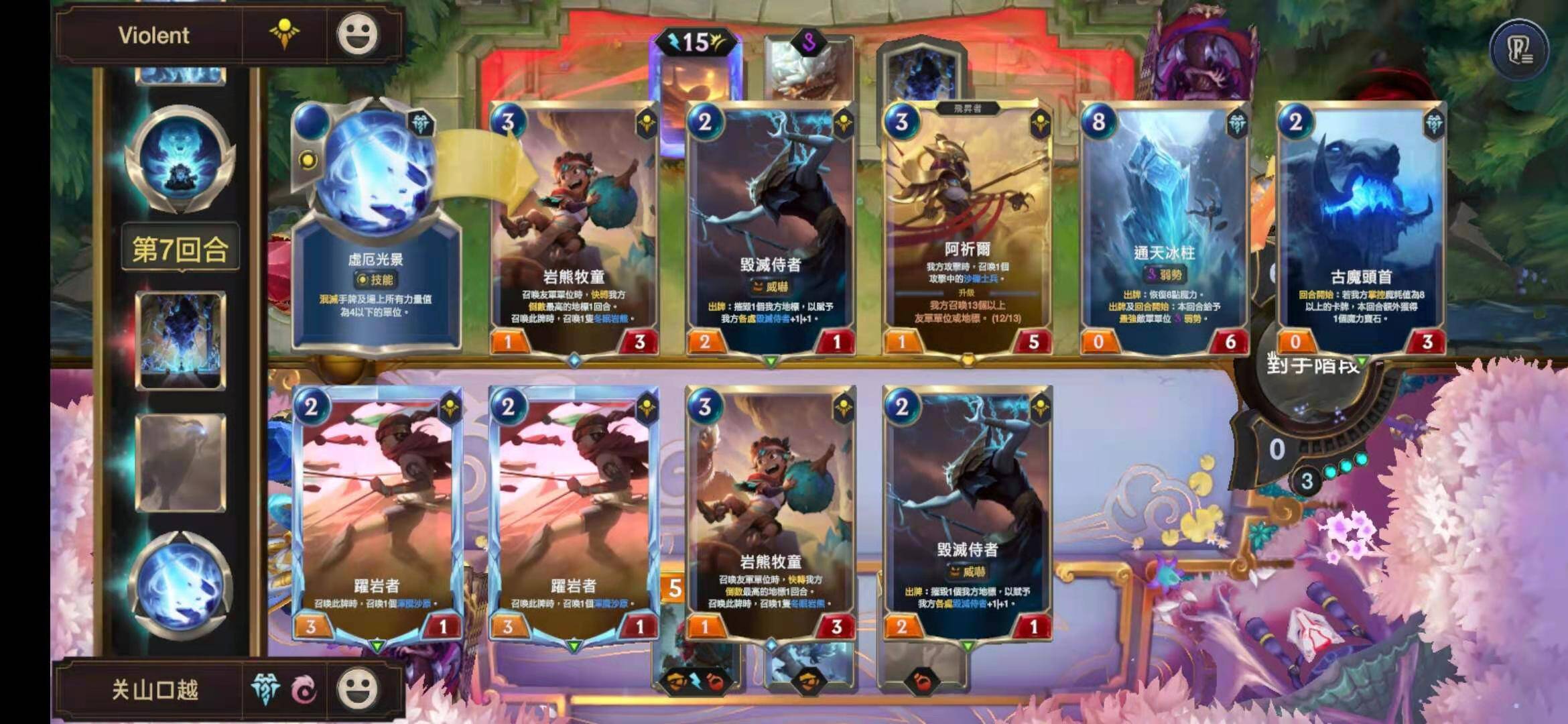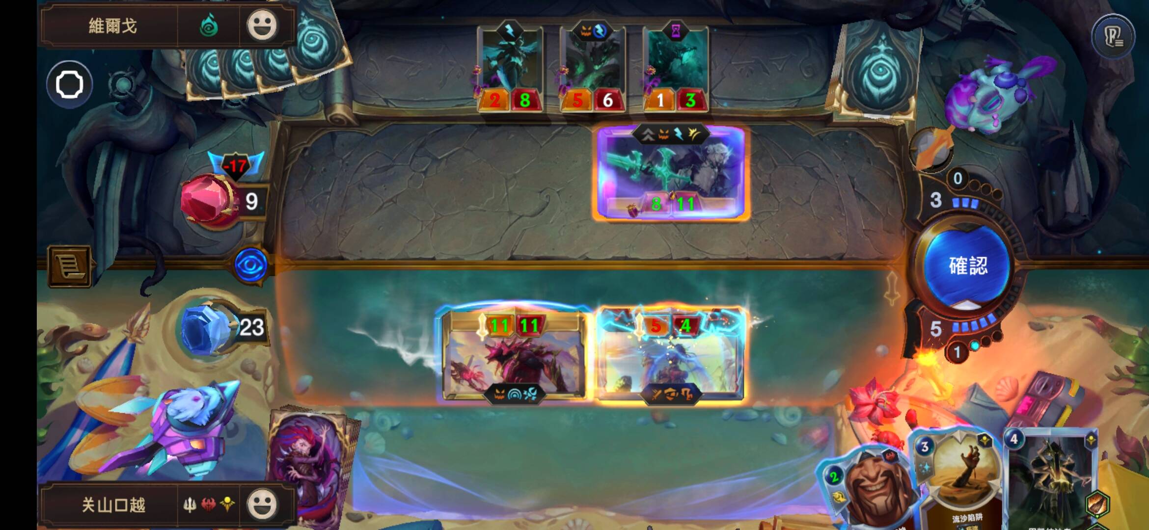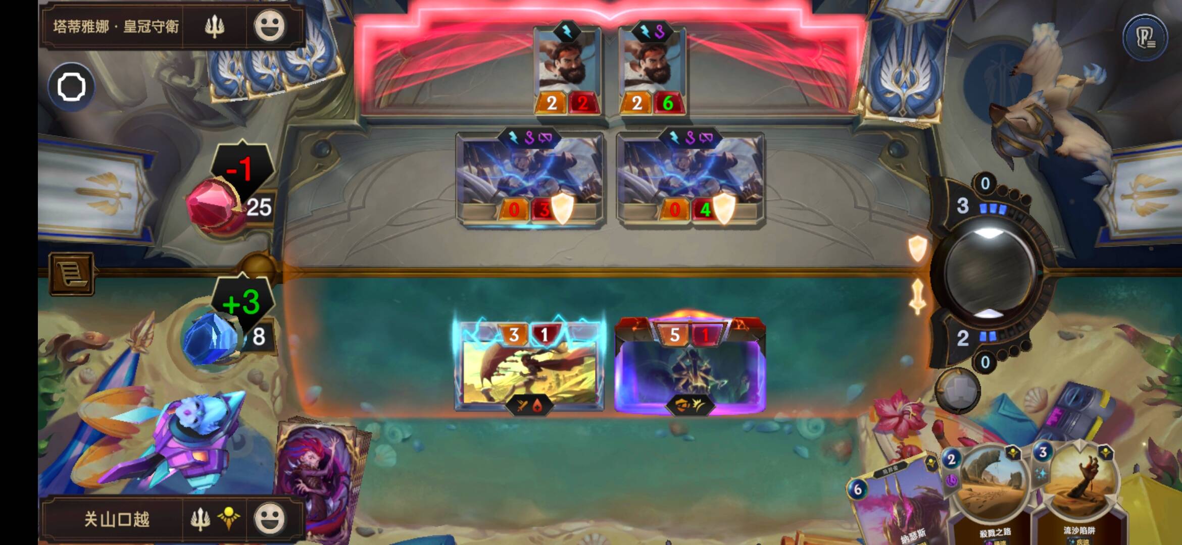 佛爷关运气直接用频率抢血,1费易损+协力打击解掉第一个佛爷,同时盖伦升级。