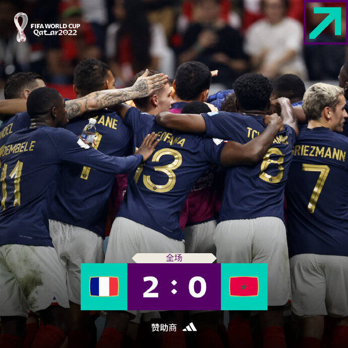 最终法国2-0摩洛哥,卫冕冠军再次杀入决赛!
