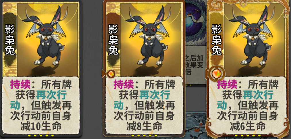 效果触发了就不错,但是筑基期半血能有几张牌吃到这个卡的BUFF保持怀疑,感觉有点鸡肋。