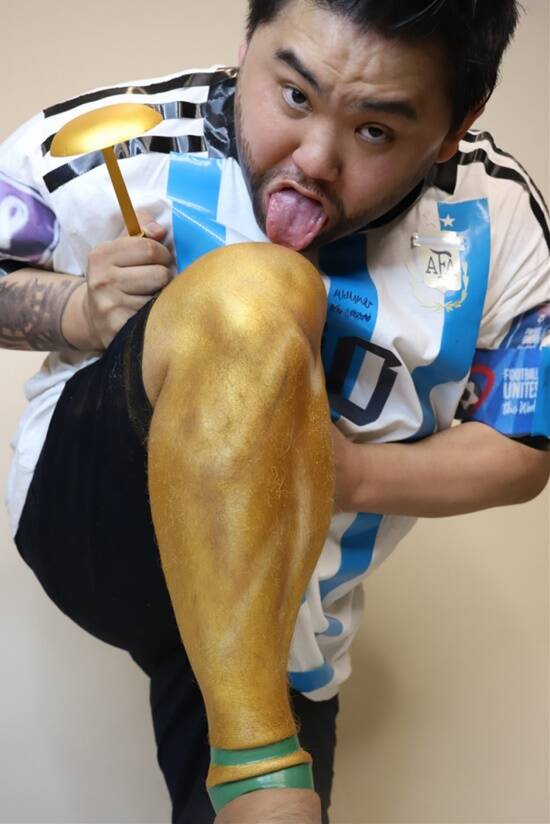 就连泰国的低成本COS小哥也迅速赶上这波热度,COS梅西亲吻了自己的“大力神杯”。