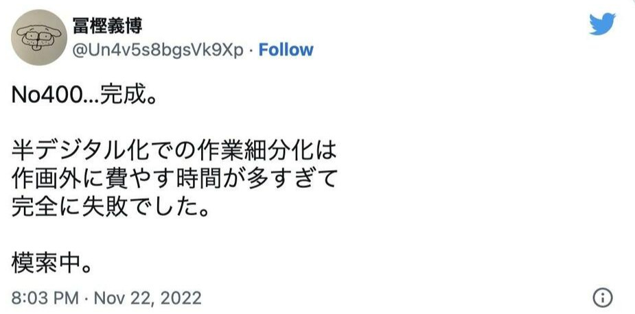 首先富坚当初在推特上的原稿汇报在11月22日时就到了400话,之后就没有之后了,而且时间到了日本的新年还画什么画,该玩玩业余爱好了,另外富坚已经伤病缠腰,能够坚持连载近两个月已经是“精疲力竭”了?