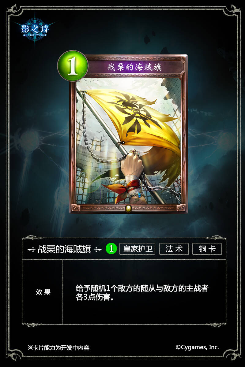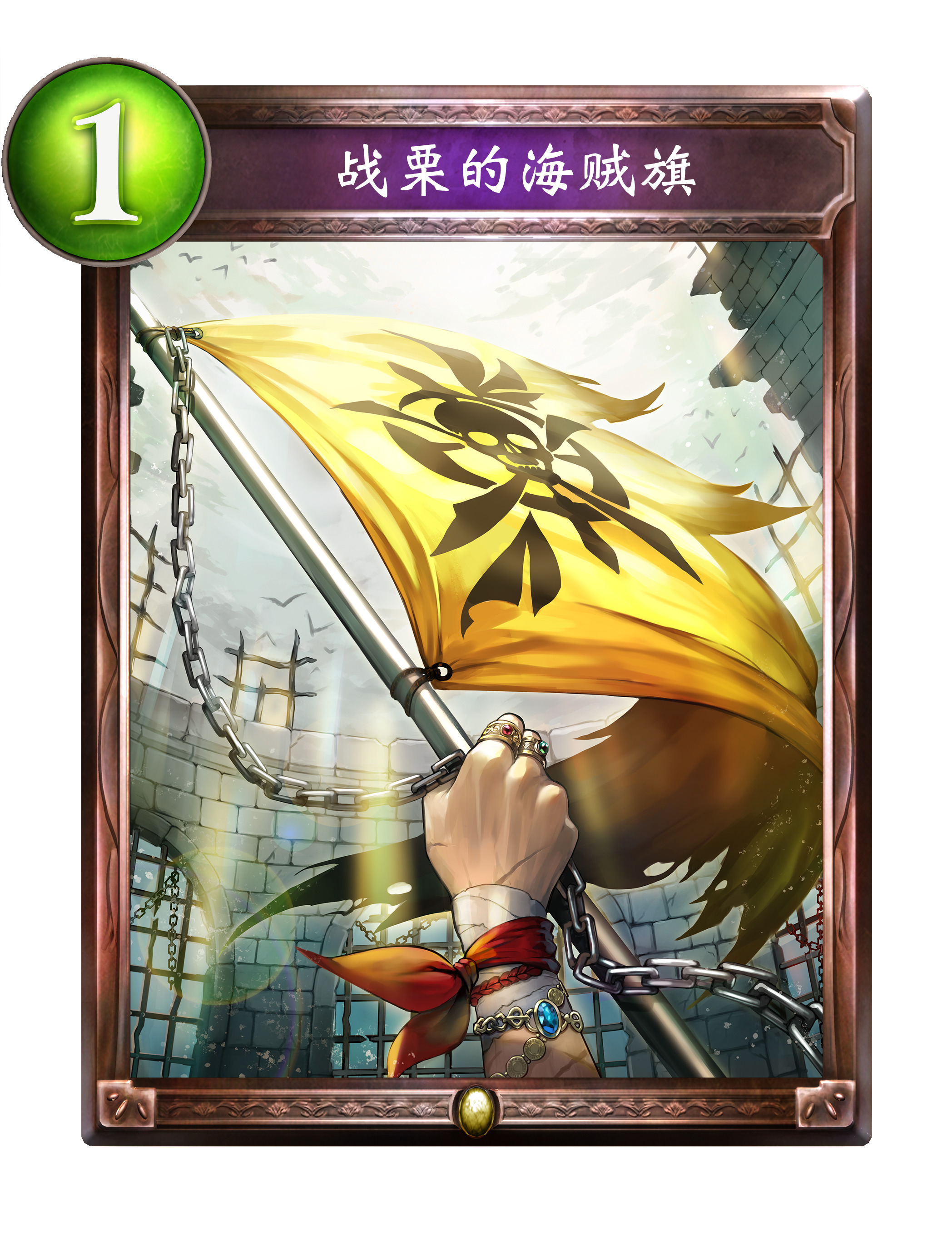 入场曲 增加1张黄金首饰卡牌到手牌中。如果自己在这场对战中融合或已使用的财宝卡张数合集为7张以上,则会由原本的黄金首饰转变为增加战栗的海贼旗卡牌到手牌中。