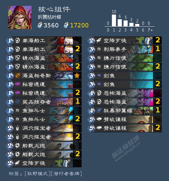 由于首先需要保证剑鱼探底探到海盗的概率,这套卡组能改动的空间不大,主要的核心卡牌: