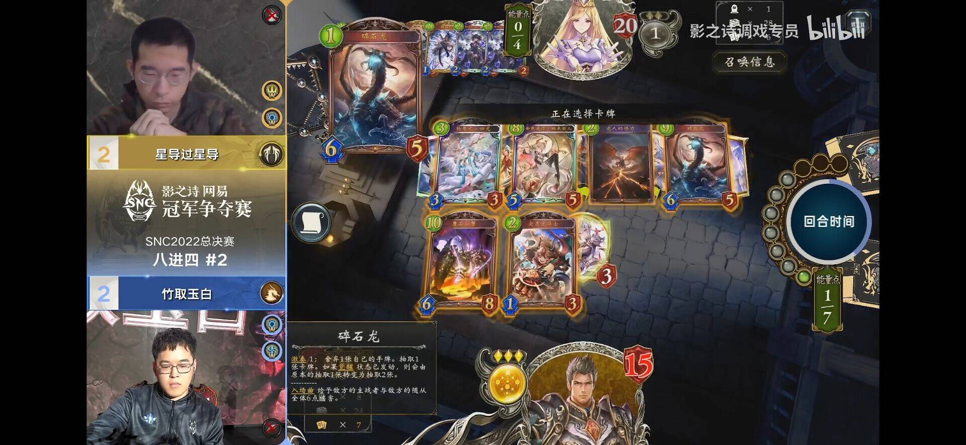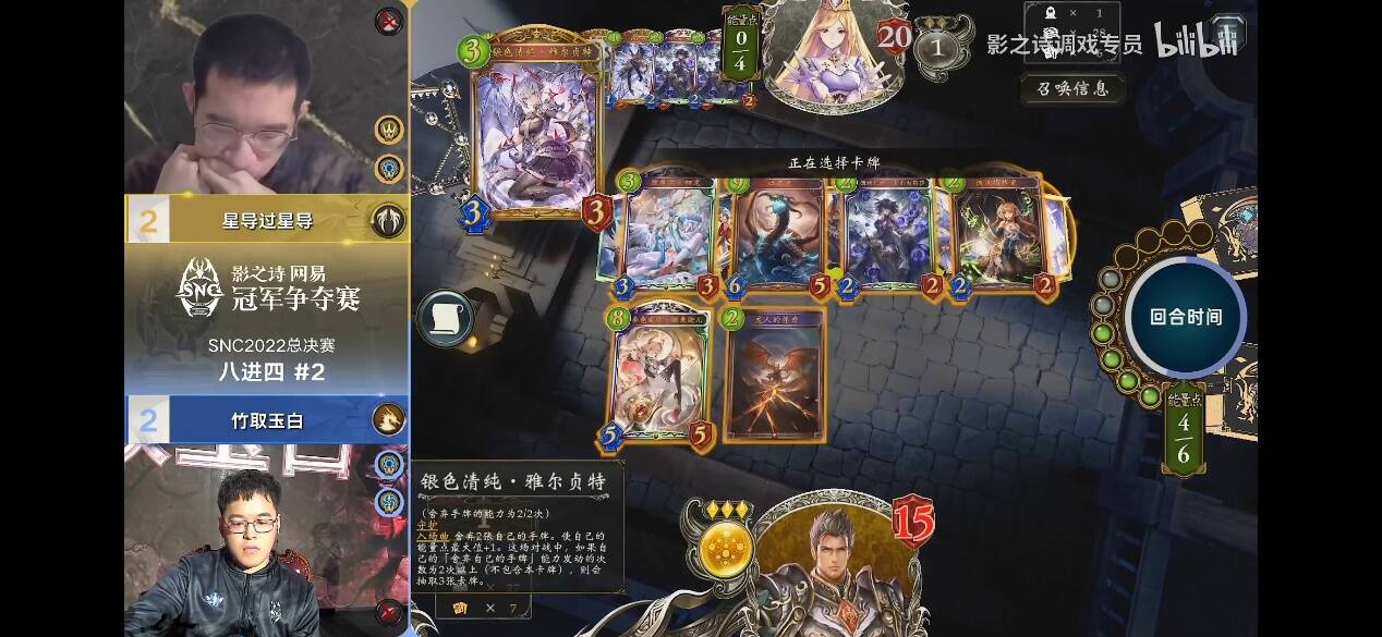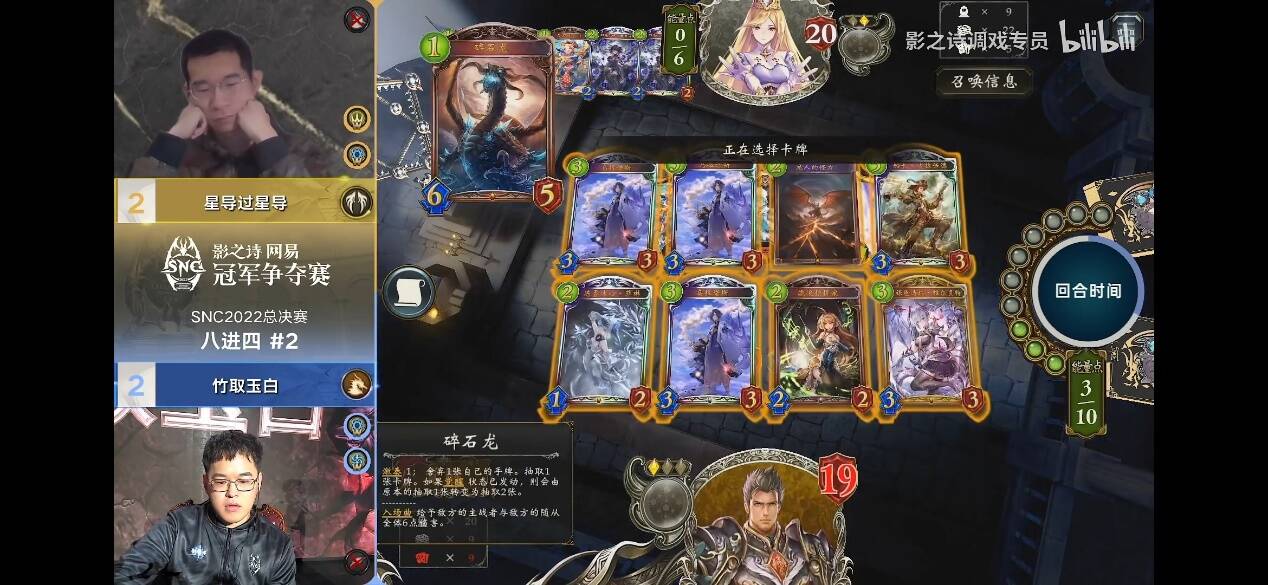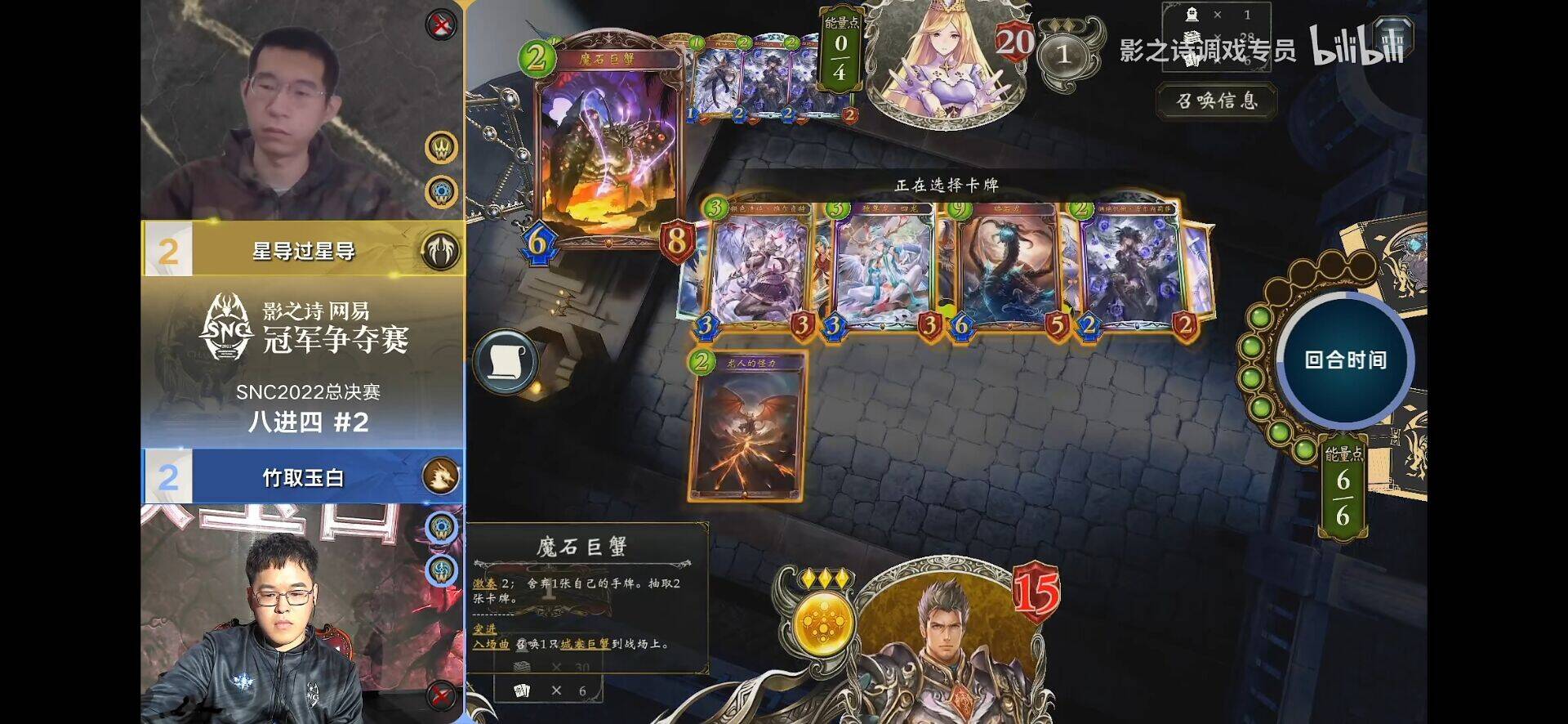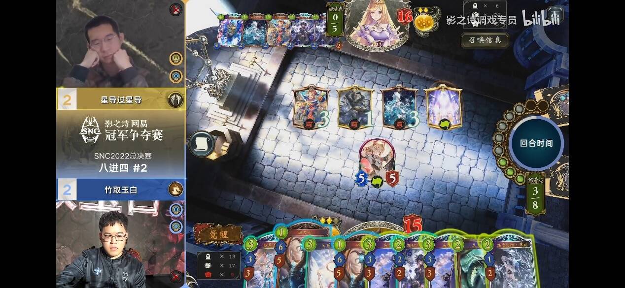 注意注意!!!!!!星导老师接下来的几回合操作让我觉得星导过星导不愧为这次snc的冠军,星导老师不需要snc冠军证明其含金量,但是snc冠军需要星导老师来证明其含金量。这块也嘴一句snc的比赛水分,某位目测练牌不到俩月的选手都能打进八强enmmmmmmmmmm 8强赛总共三把前两把打的伏笔一大堆,最后一把估计是挨打出经验了打的还不错,还是不出意外被抬走,选手是谁这里就不说了。