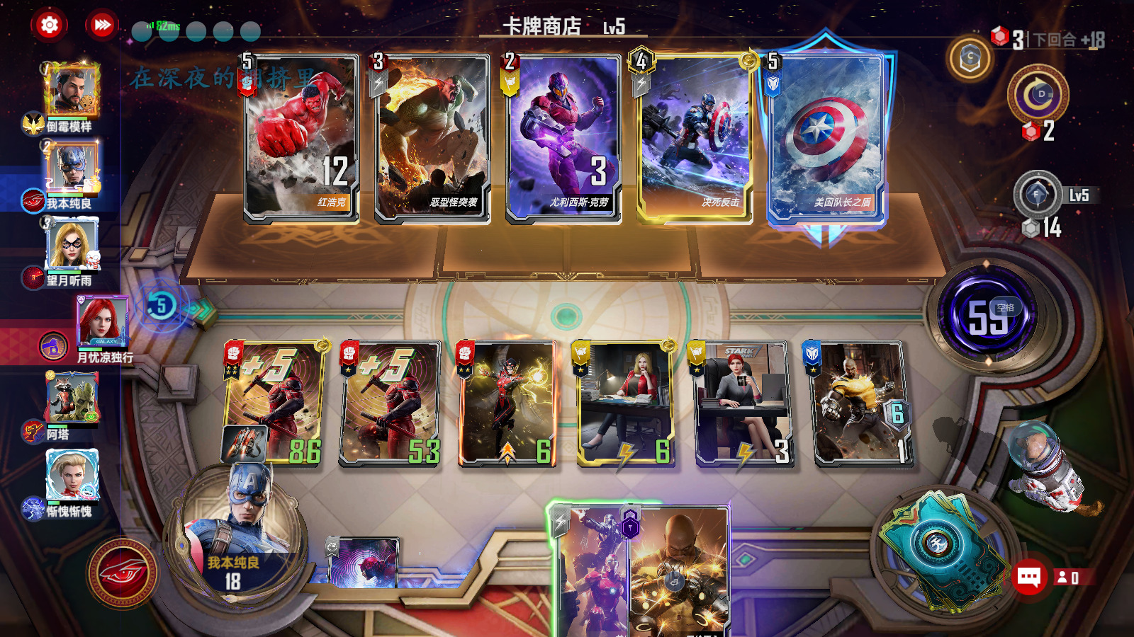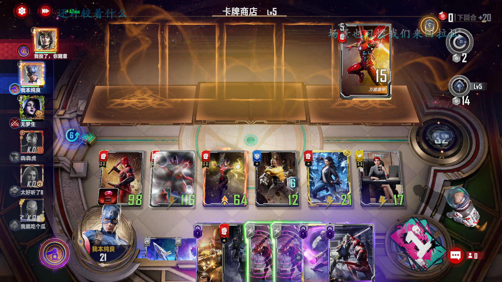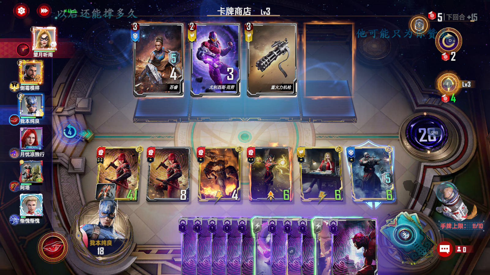 第二-六回合:在三本商店找东西做事情,拿卡的优先级为夜魔侠>角斗师≈星鹰≈黄蜂女≈小辣椒≈卢克>其他