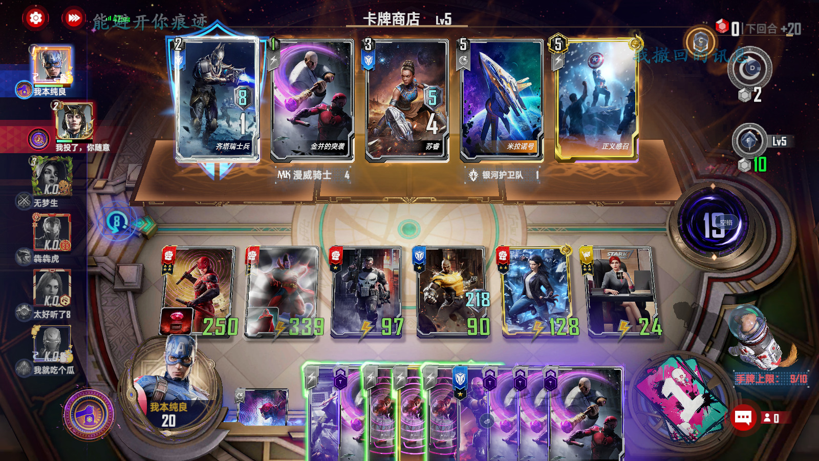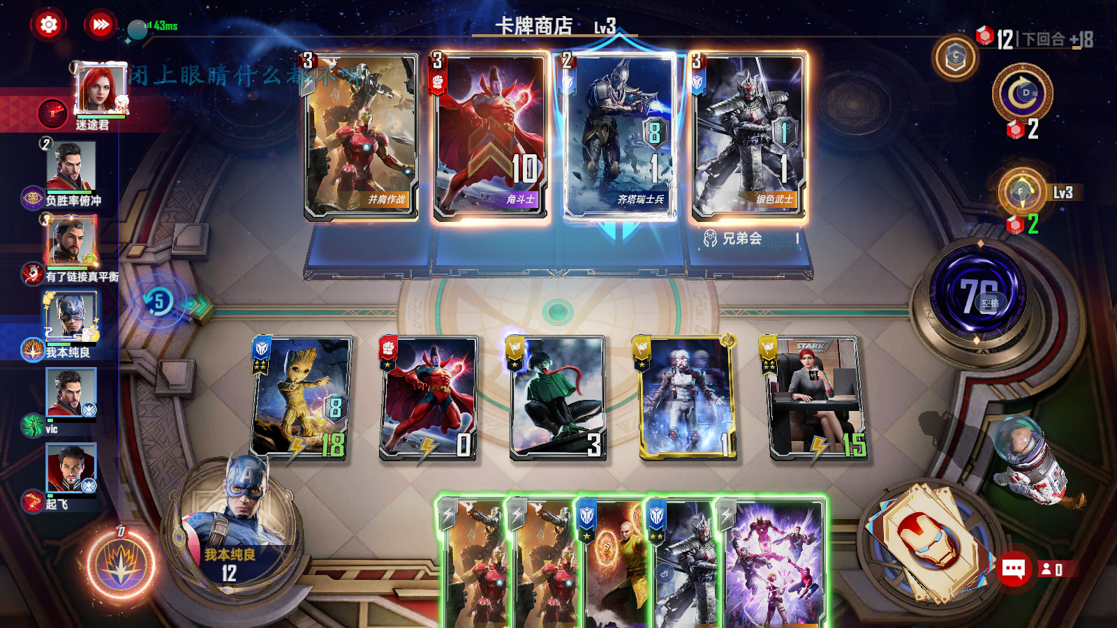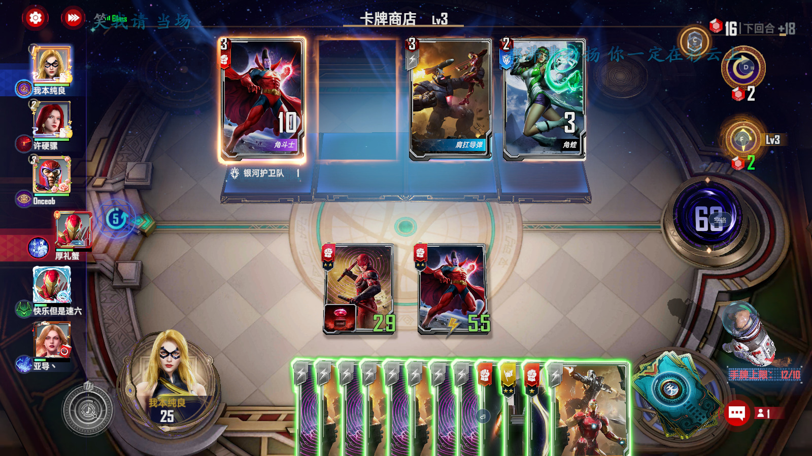 第二-六回合:在三本商店找东西做事情,拿卡的优先级为夜魔侠>角斗师≈星鹰≈黄蜂女≈小辣椒≈卢克>其他