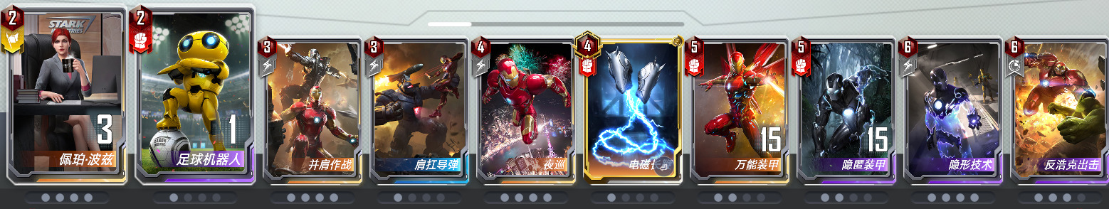 佩珀·波兹×4:在本卡组中主要配合星鹰和黄蜂进行打出赚钱操作,我实操下来很少有空打出的回合,请放心满编。