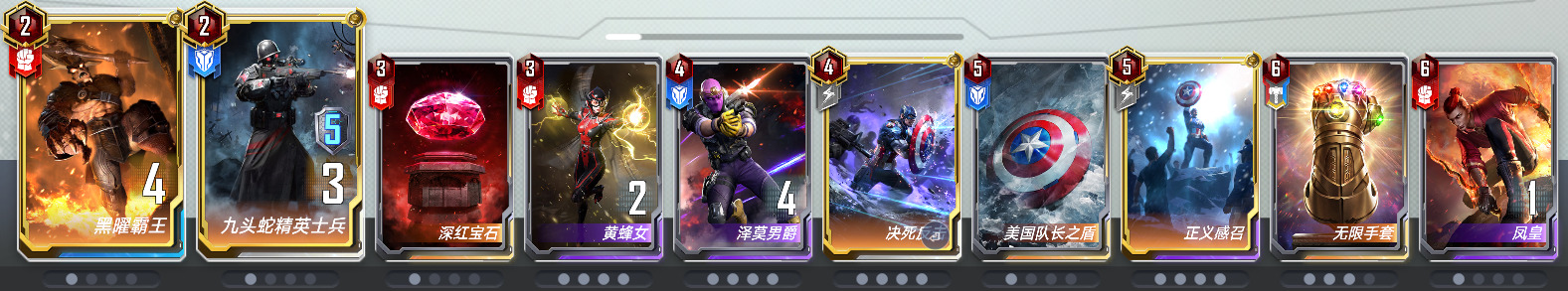 九头蛇精英士兵×1:二费卡里单卡战力的天花板,前两回合不知道买啥买他买他买他。