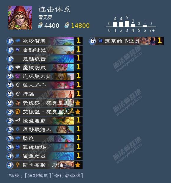 贼后期卡组玩家也不少,剽窃贼是一个很有代表性的卡组,趣味性很高,随机性很强。也是我之前唯一的贼娱乐卡组。这里要提一下斗鱼主播伊藤诚,我看直播不是很多,不过大概知道人们对他评价褒贬不一。单论构筑,我认为他的很多思路是非常好的。也为我提供很多构筑时新选择比如艾萨拉女王