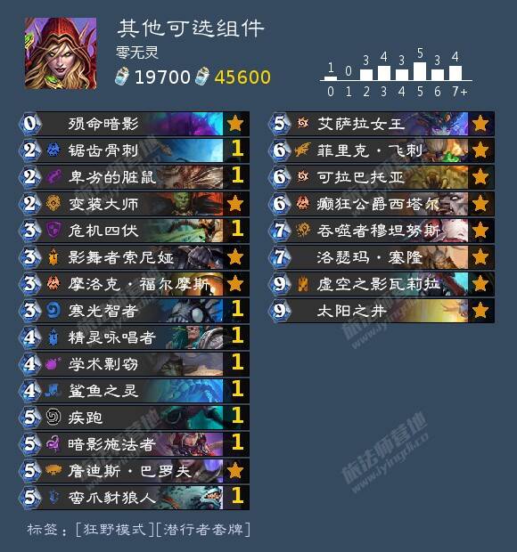 殒命暗影:我个人没用过,没尘合,我特贫民。但大家构筑可能自然发现,随从多,这张牌没什么值得配合的法术