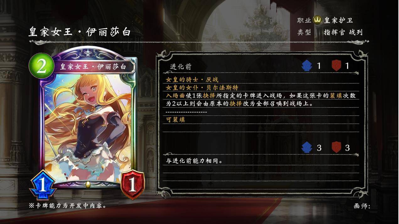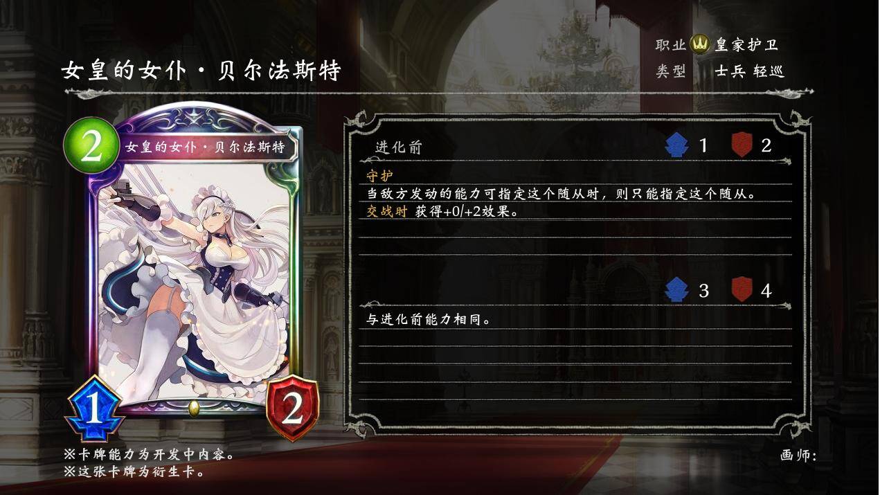 皇家的可爱女王伊丽莎白。2费正常的双协作任务,同时提供了皇家需要的解场。贝尔也是肉眼可见的强大,短短三行写满了你解不掉。缺点就是后期不强吧