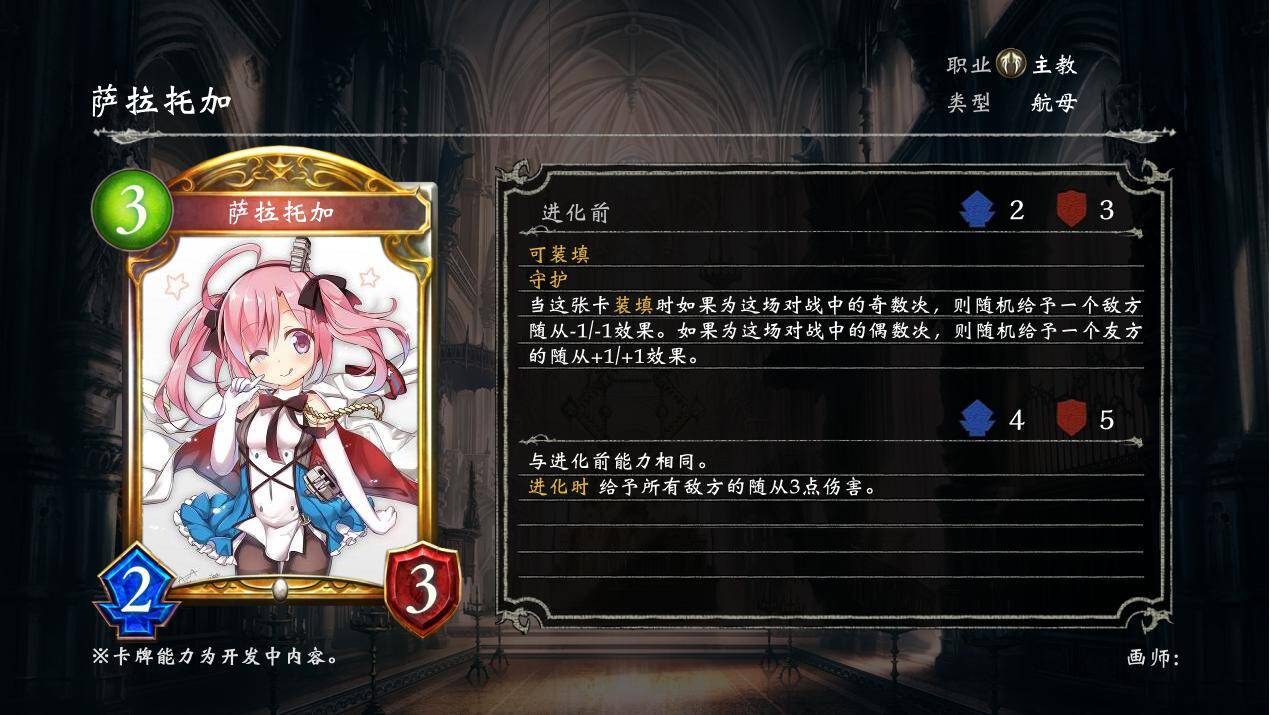 装填:具有可装填的随从在手牌中时,一回合一次可以进行装填的操作,可以选择任意一张牌,两点费用,一点进化点中任意一种来进行。特别的当你使用进化点来进行装填时获得不消耗进化点也可以进化的效果。其中具有航母和战列随从类型的随从如果进行过装填则在入场的第一个回合不会受到战斗伤害。