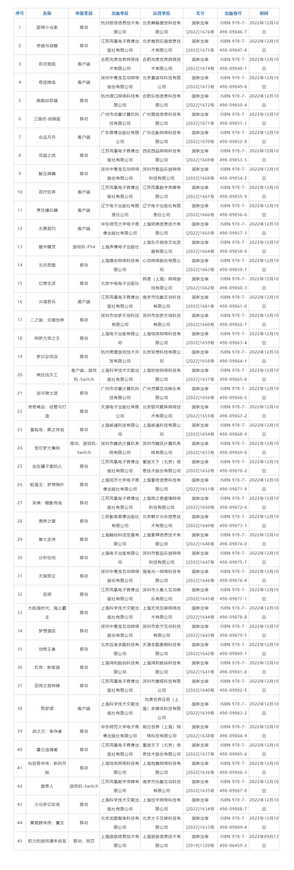 12月28日,国家新闻出版总署发布2022年进口网络游戏审批信息,共有45款游戏获得审批。包括《双点医院》,《巫师之昆特牌》、《宝可梦大集结》、《无畏契约》等。