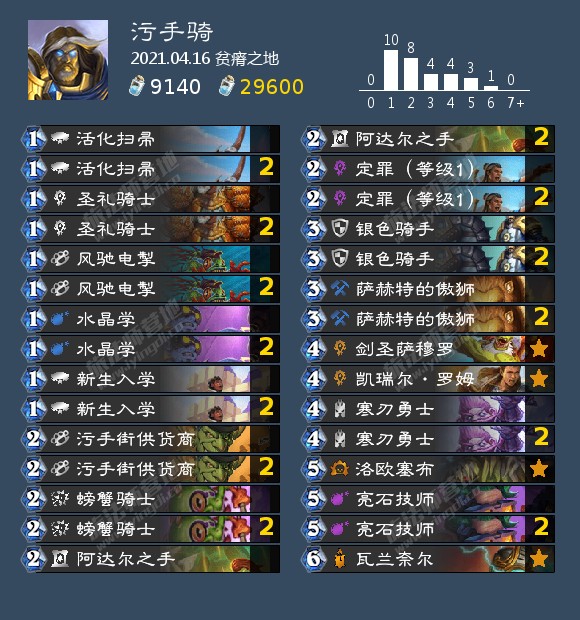 贫瘠之地版本上线,污手骑终于变身完全形态,四大服务器登顶,成为当时人人必备的卡组。老师都用这套卡组差点登顶,你能说不强吗?我的印象里老师污手骑最高打到第二来着。