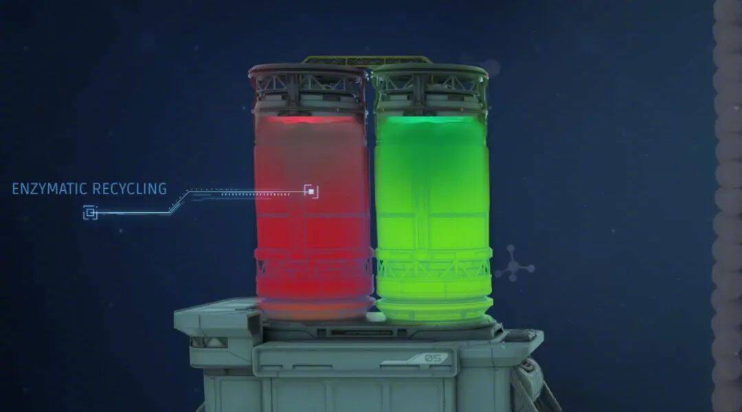 那么舱里的婴儿,通过什么长大呢?舱里的人造脐带,能吸收绿色生物反应器里的营养物质,产生的废料(红色)也将通过人造脐带传输到第二个生物反应器,通过某种工程酶再转化成有用的营养素,还实现了可持续可再生的理念。