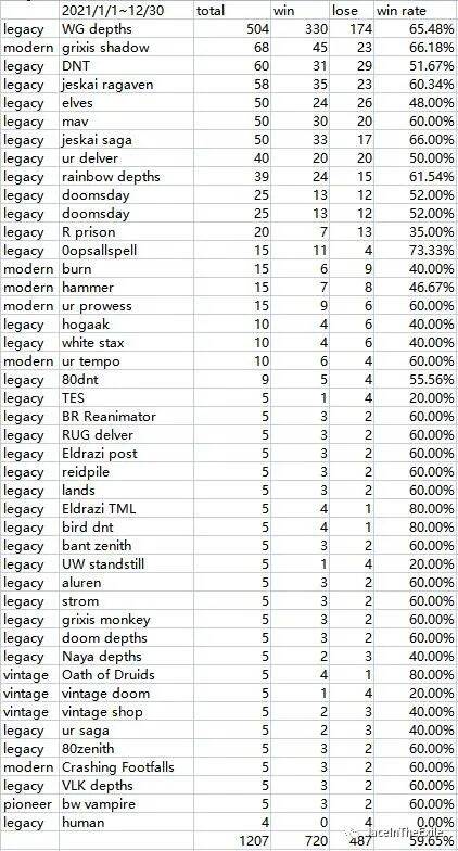 整体对于现在的环节,我还是挺满意的。其实从我ur delver的角度来看,面对环境绝大多数的主流套牌都是可以打的,个人感觉体验还是不错的。 其实从ur的平均胜率来说,基本上也就是50%左右,只能说这套牌玩的人多,比较稳定但是不能说这套牌面对别的套牌展现出了碾压性的优势。