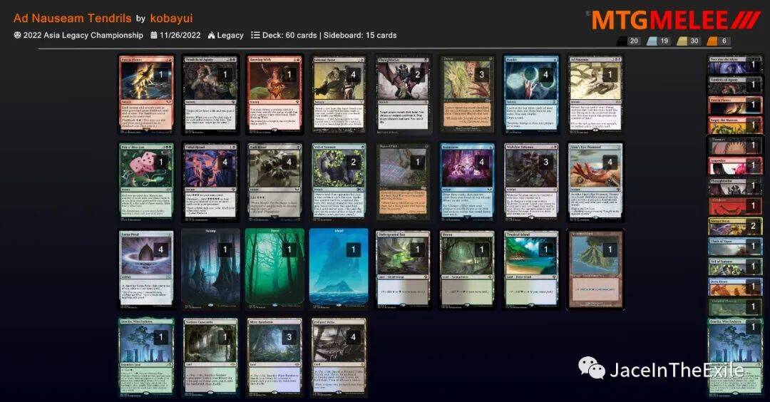 由于玩过80张的套牌,套牌的自爆性在我自己玩下来感觉很难避免,于是压缩了一套60张的4C控制,算是我第一次自发性的去设计一套蓝牌(其实本质还是绿牌),并且在直播的情况下打了一个7轮的瑞士轮全胜,从赢Matthew的掘密师到被Matthew送走。