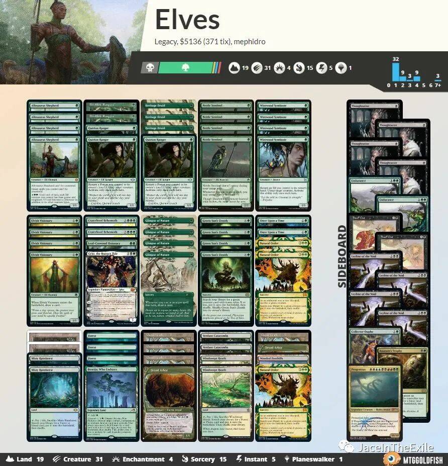八强为3x妖精、3x掘密师、先制白、4C控制,无独有偶,3套妖精均为瞥视自然版本,并且第一名也在决赛中击败先制白,证明了瞥视妖精确实是对抗先制白的版本答案,而3位掘密师似乎也狙击妖精失败,看了一眼备牌两位带的2兄弟反目、一位只带了1张怒火,在清场咒语上似乎没有之前的喜庆终结或者艰险//坠落那么尊重妖精了,而瞥视这个版本肯定是要比垦殖版本的妖精速度快若干回合的。
