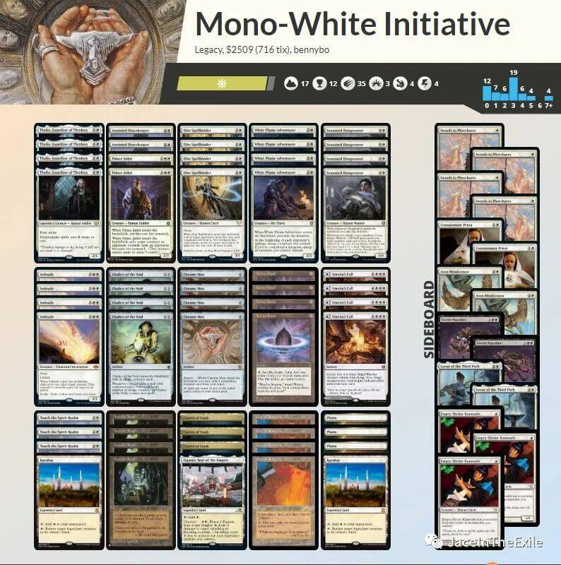 另外八强里我也将红白先制和白先制的牌表贴出来,其实红白版本就是多了4个混沌洞穴冒险家,在能获得地城时第一项便可以找一个基本地,所以找出套牌中唯一的山脉并不成问题。另外在各项赛事统计数据,章人早餐绝活哥的胜率普遍都在55%以上,有瞬间致胜能力并且具有一定fair能力,让它能同时对抗掘密师和先制白,或许是这套牌表现不错的原因。