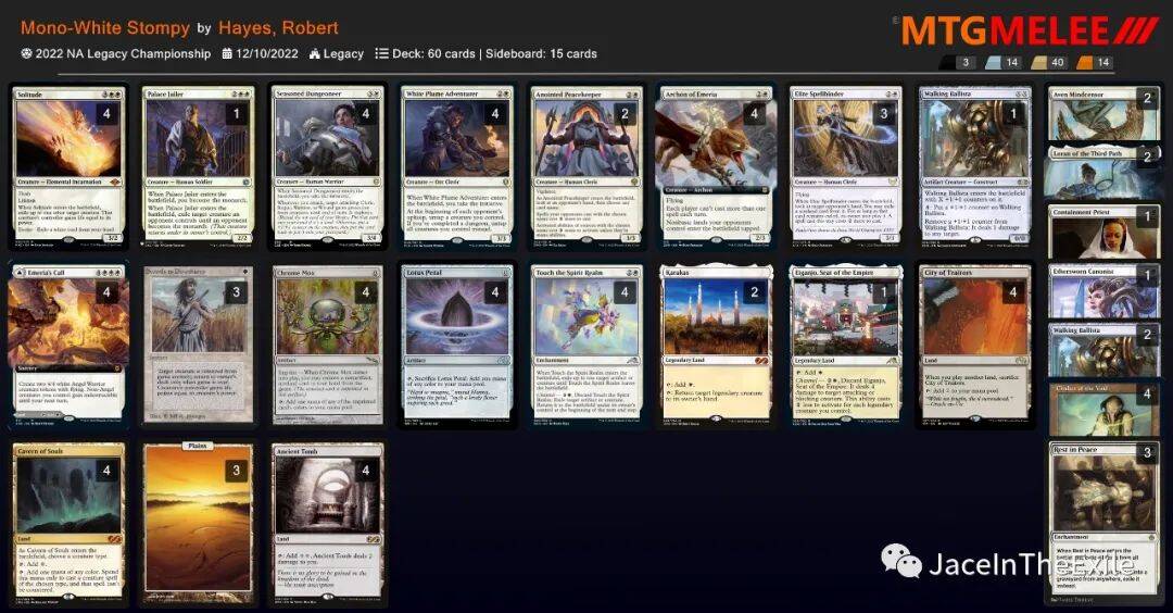 最终是Jay Wojciechowski的掘密师战胜hank wang操控的4C控制拿下了冠军,b站也有全程对局录像可以观看BV1td4y1e7QV。4C这套牌其实就是一套使用绿色威胁手段的控制牌,主牌局4C被炸到没办法同时开滤牌去找地加去除,备牌局4C中期站住坚忍坚持到出一个乌洛反杀,而第三把结束的比较快,掘密师在中期结算了一个进步的代价便带走了4C。