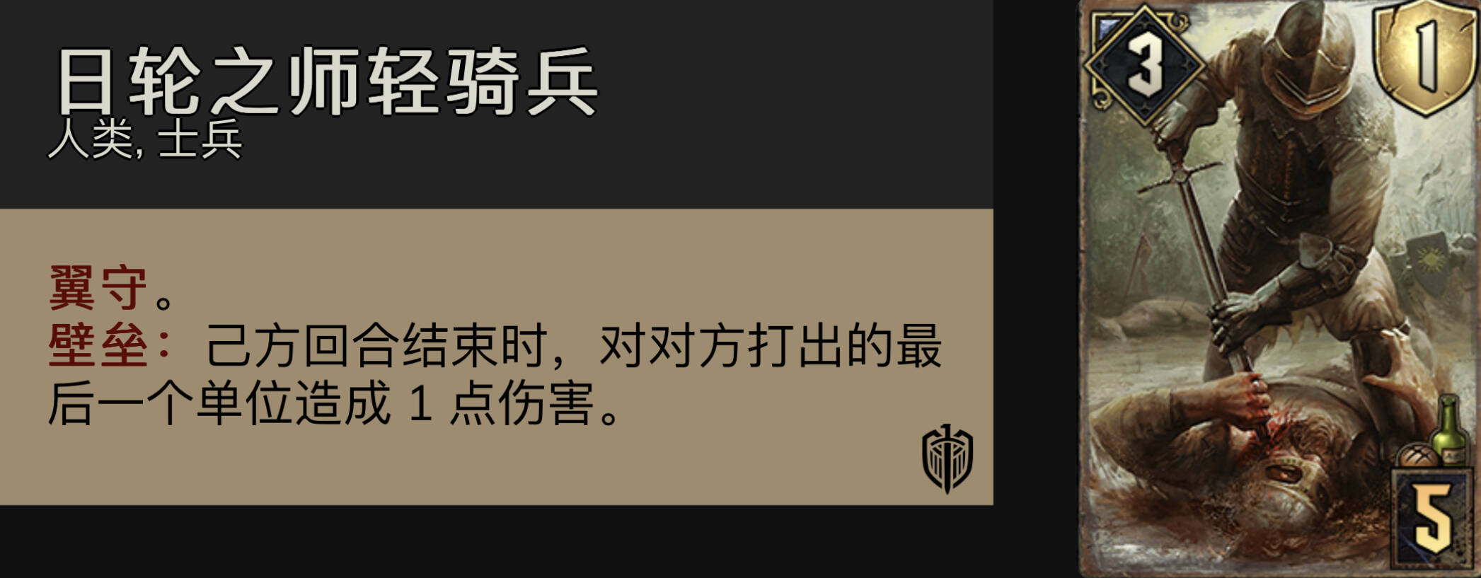 龟甲盾卫:扎实的4p7,侦察员的好基友。高身板配合流星雨能直接涨到11点。由于这张卡是侦查员的点数支撑,所以在侦查员出完之前,是不希望手打这张牌的。这套帝国也不缺先手牌,所以r1的4p7是需要调度走的。