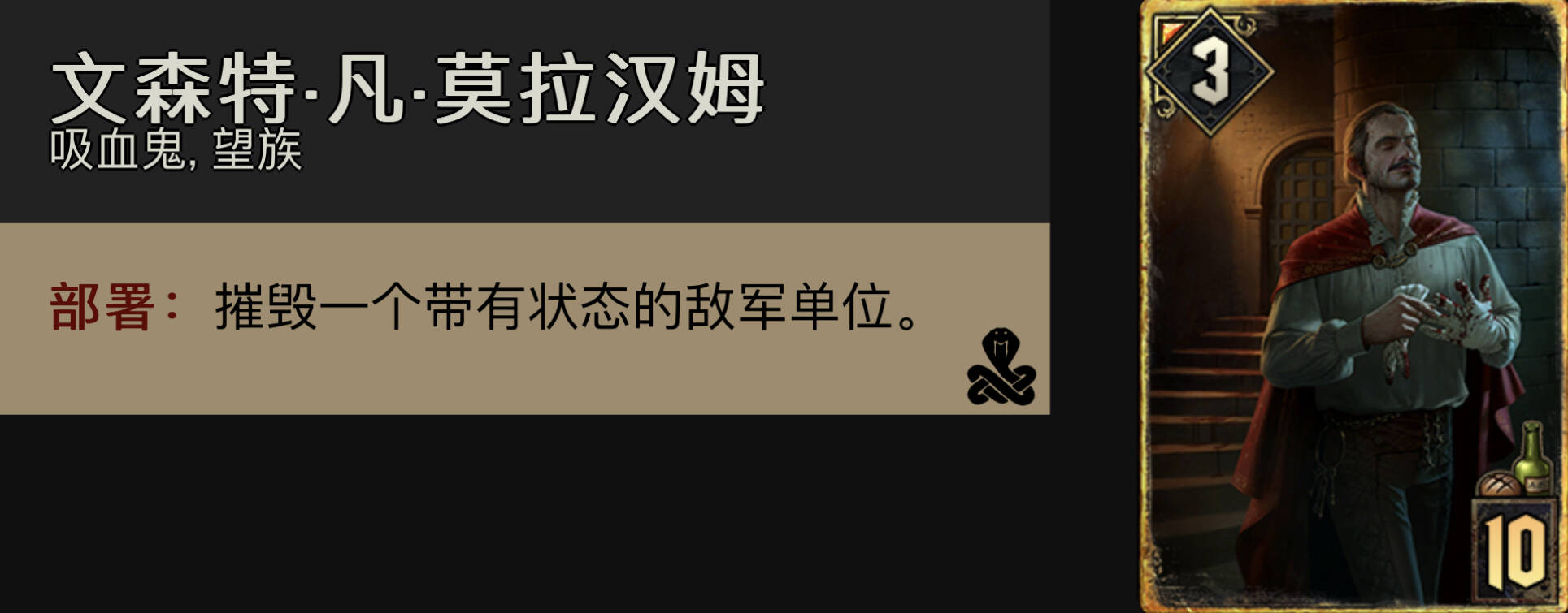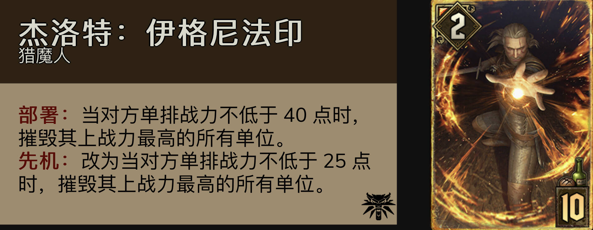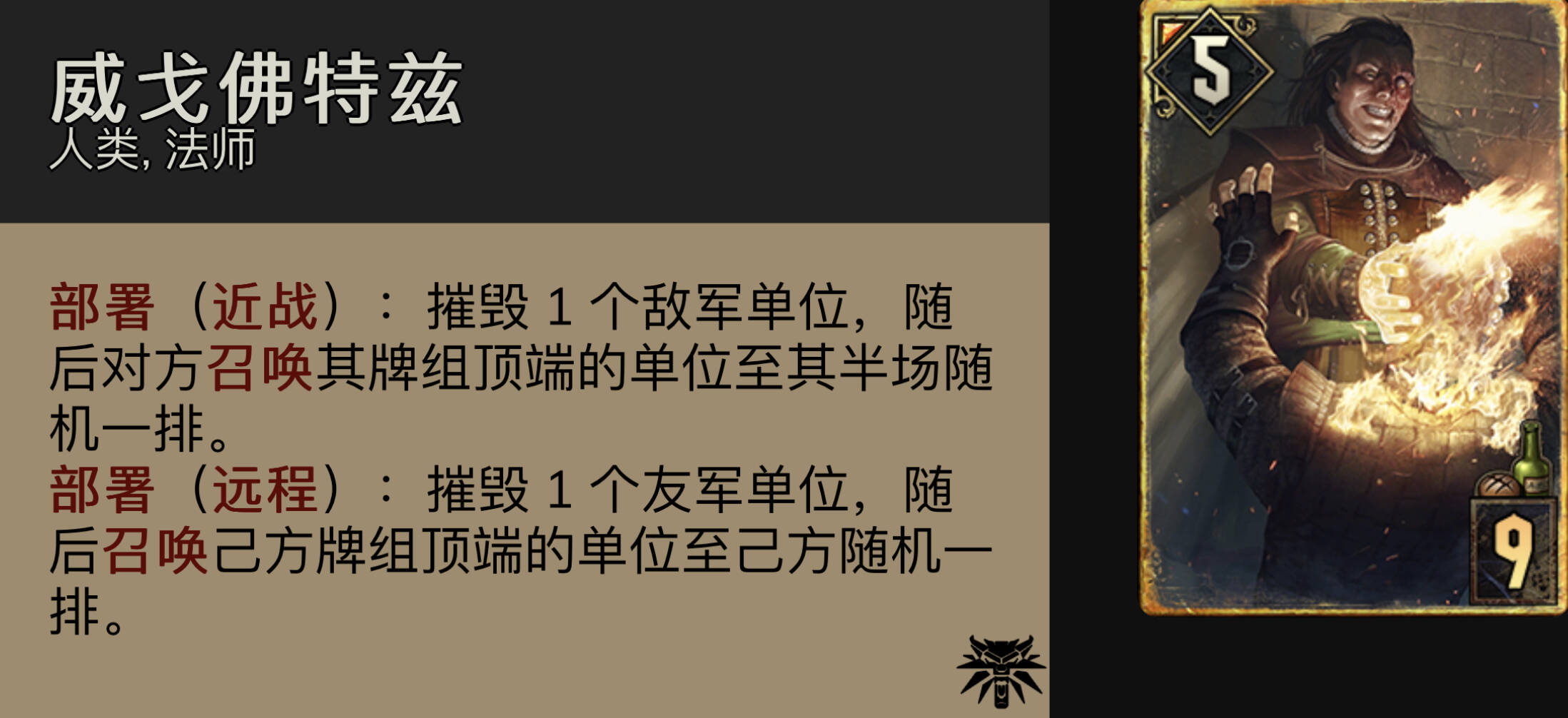 威戈佛特兹:无敌的威爷,永远的帝国神卡。打抓6同化时r1最想要的卡。在对面拍过约翰or自己用侦察兵看见了对面牌组顶大金时,用威爷烧出来能提供非常大的优势。注意在威爷有可能内鬼的情况下尽量晚点开(比如避免烧出和谐的引擎,霜怪的金童)。