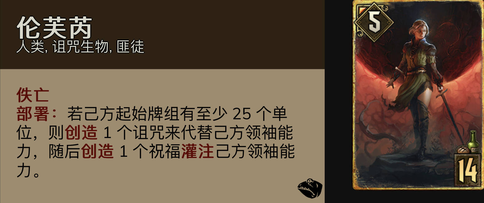 伦芙芮:即使经过多次削弱仍然强力的绝对核心,尽量在符文法师之后开以求找到最理想的技能。主动技能最万能的是打一抽一与生成战术优势,被动技能则是奶到10和打出牌组人口最低单位;奇偶加成的被动经过削弱过后,若不是在r1早期就拿到,则不再推荐选。tips:1. 打一抽一 + 打出牌组人口最低单位可以快速铺场给流星雨爆点做准备;2. 对战群岛有后手的情况下可以考虑拿生成单位,生成对面的13点恩岳父;3. 打呓语则优先找伤害处理引擎。