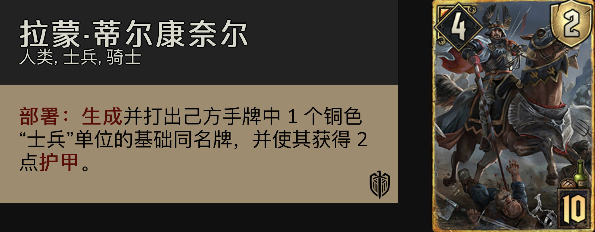 拉蒙:配合铜卡士兵非常灵活的大金:配合轻骑兵和士兵锁可以提供控制,配合侦察兵和中士可以提供扎实的点数。由于这套构筑的r1有轻骑兵已经足够强势,所以拉蒙作为珍贵的资源,不要轻易r1开掉。