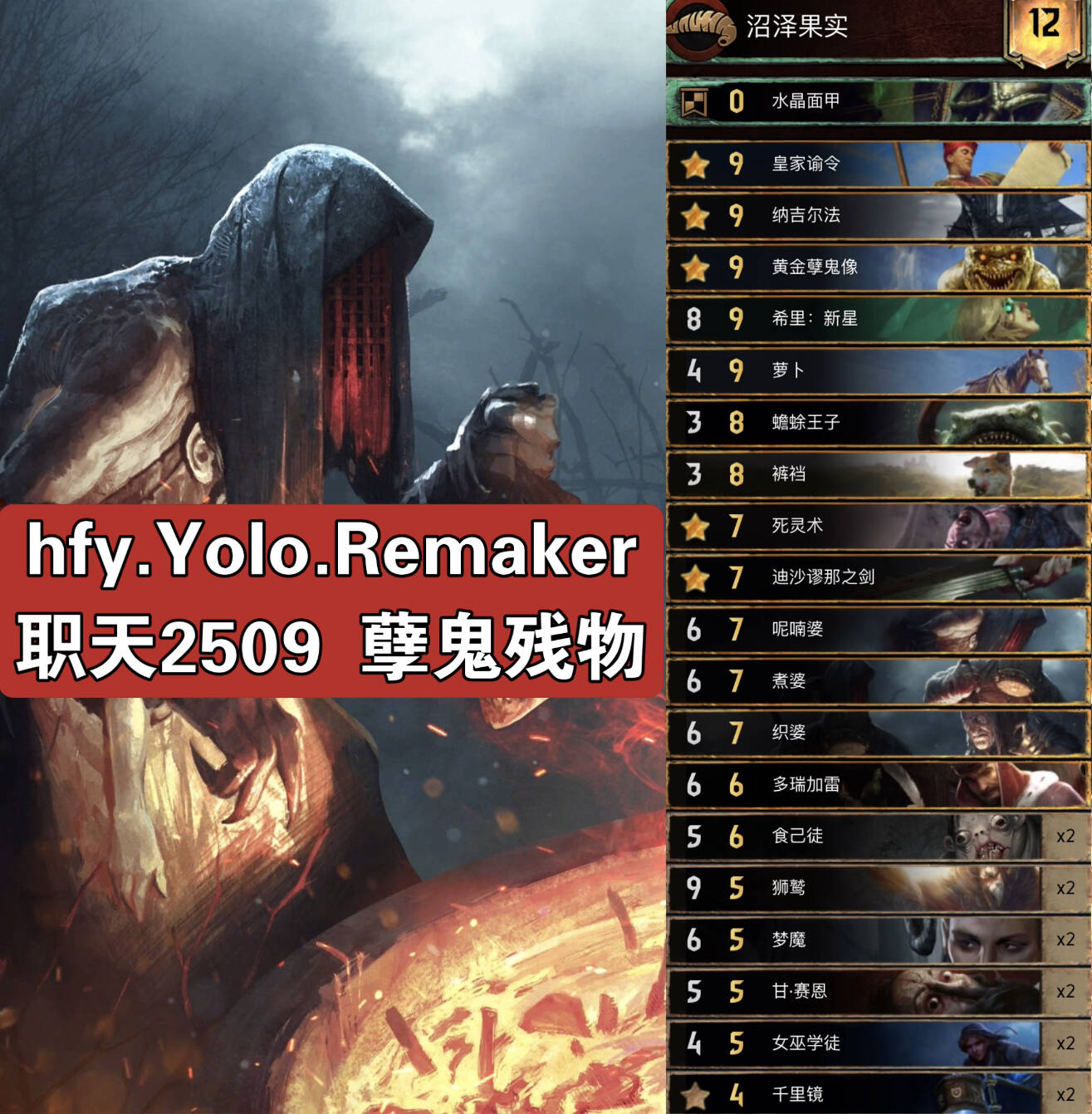 残物和谐:更加纯粹的自闭类卡组(与残物沾边就变成了这个样子),操作简单,适合玩不明白希鲁的玩家。夸里西斯搭配领袖有着相当大的爆点节奏,并且对面如果无法处理,后续的达娜梅碧又是一波大点数。r2手牌好的话莽穿对面是相当容易的事。