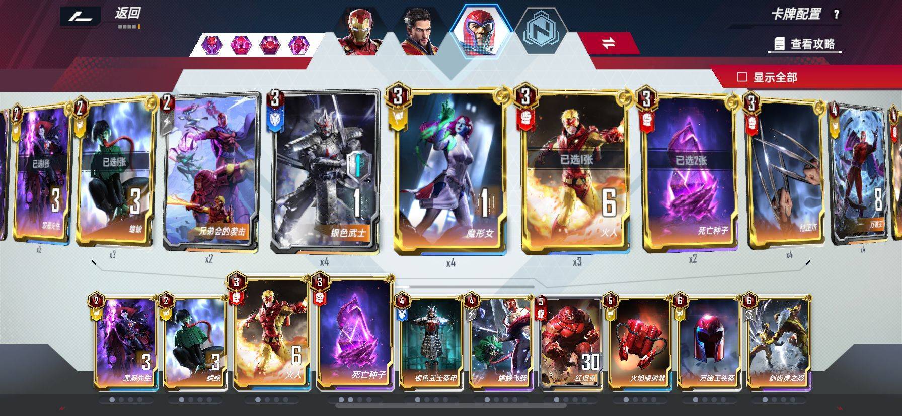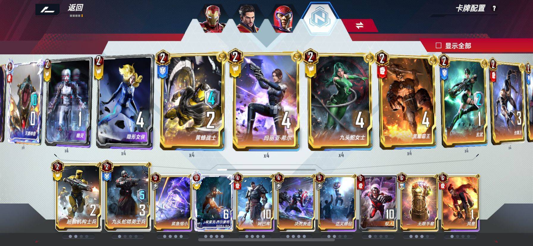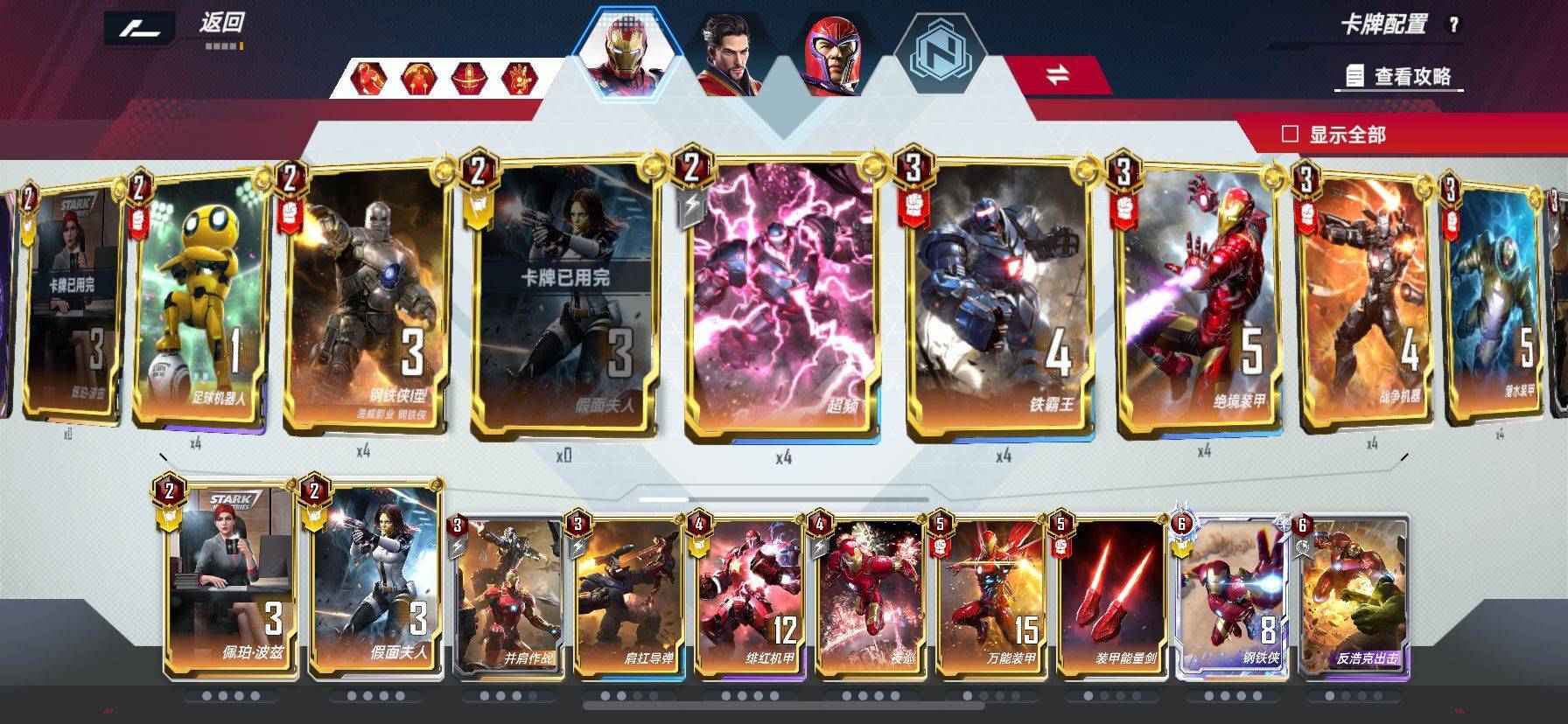 这个技能怎么来说呢,卡组内3本带的是并肩和改良没有钢铁侠单位打出回手,比较依赖豹子给的牌,不过也算是个不错的回血技能,尽量把手牌塞满在回手