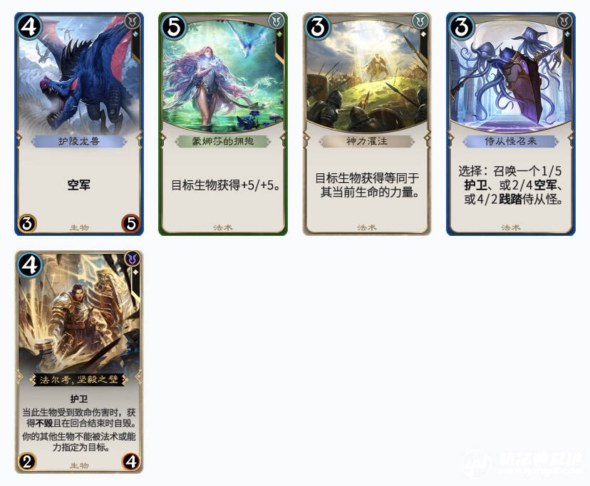 大家其实可以考虑【神力灌注】这张法术牌,因为【护陵龙兽】+【蒙娜莎的拥抱】+【神力灌注】=18/10【护陵龙兽】。要知道3/5身材的空军生物可不是那么容易解决的,一旦对手放松警惕,我们偷鸡的机会就有了!