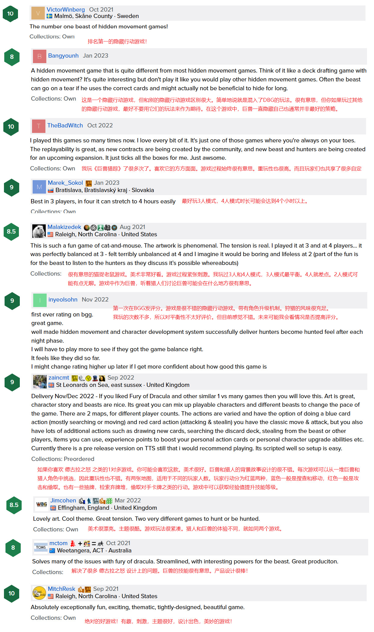 来自BGG的海外玩家评论
