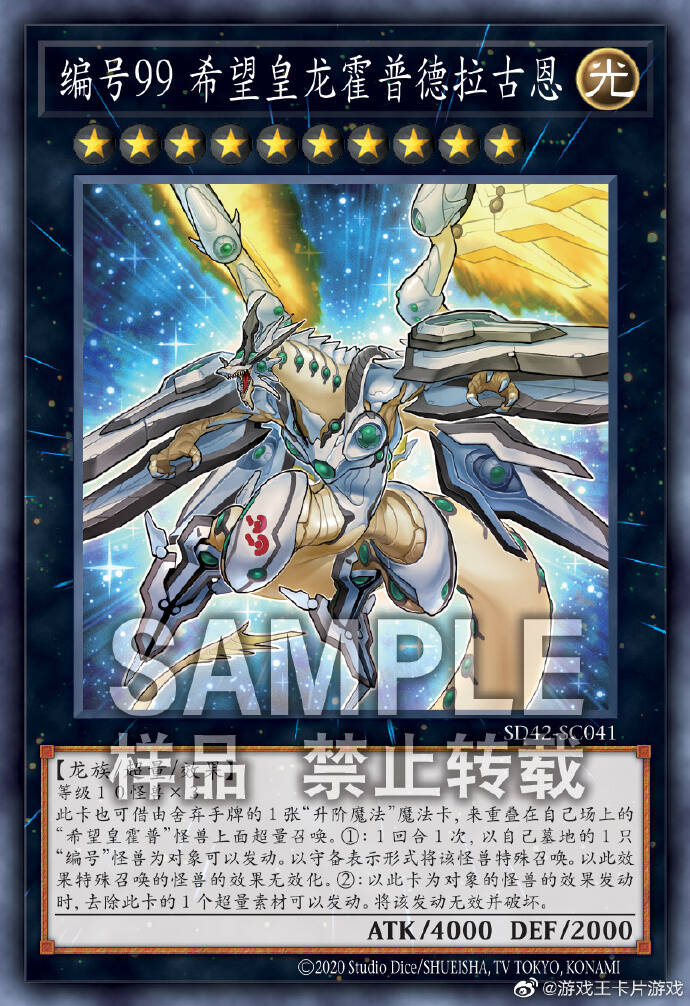 游戏王 决斗怪兽 主题卡组:叠放宇宙(简体中文版),2023年2月4日发售!重叠热狂的灵魂!新的希望在此闪耀光芒!本次为大家带来的预览卡片为主题卡组:叠放宇宙收录卡片,『编号99 希望皇龙霍普德拉古恩』!