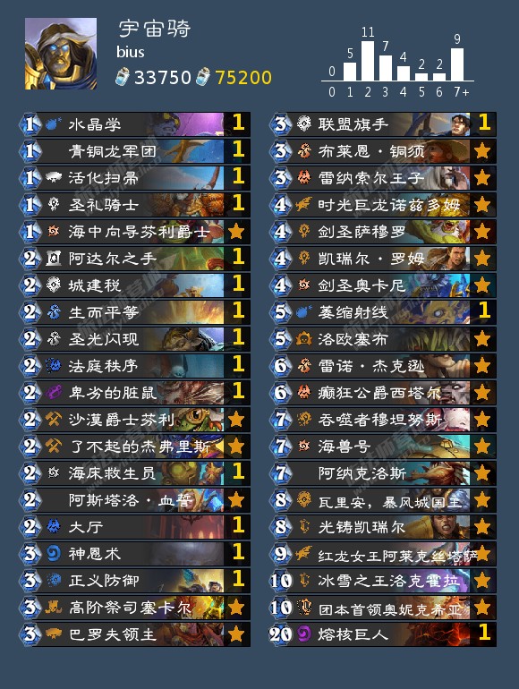 这一届投稿的读者真的厉害,这个版本一直没有战士圣骑士的卡组投稿,昨天就有读者投稿了战士,今天又有两套其实投稿,这下这个版本总算是齐活了。第一套卡组来自bius,他用该卡组上至美服43。第二套卡组来自夜小小天,他用该卡组上到47。夜小小天在投稿的时候还写了很长很长的文字,我把它po在这里。